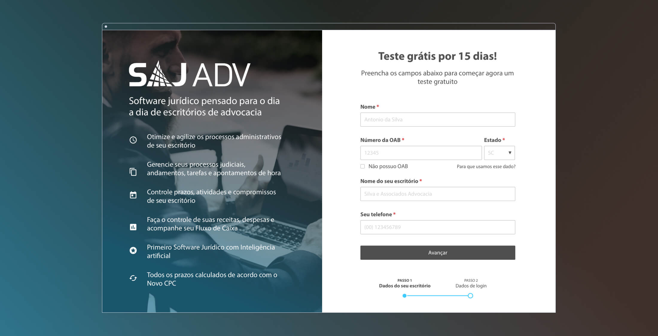 In 2018, people at SAJ ADV - a Legal Software Company within SoftPlan - asked me to redesign their marketing website. The project goals were to make it more visually modern and to build a foundation for continuous optimization, migrating the static website to a Wordpress structure.