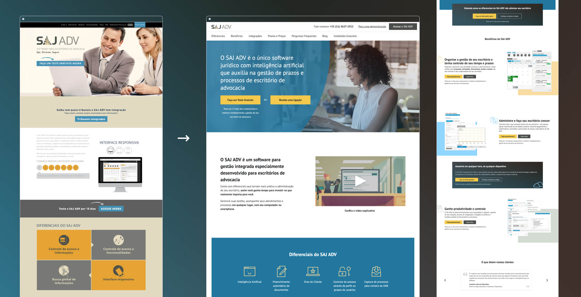 In 2018, people at SAJ ADV - a Legal Software Company within SoftPlan - asked me to redesign their marketing website. The project goals were to make it more visually modern and to build a foundation for continuous optimization, migrating the static website to a Wordpress structure.